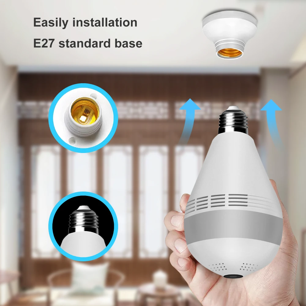 Well, A fantastic spy & hidden bulb camera is here to rescue, that does not look like a camera but is defined as a capable camera because people become alert and active when they are in the presence of a CCTV Camera. This camera bulb provides an HD 360 panoramic view with many features such as providing a complete picture of the room or office as well as views from all sides.