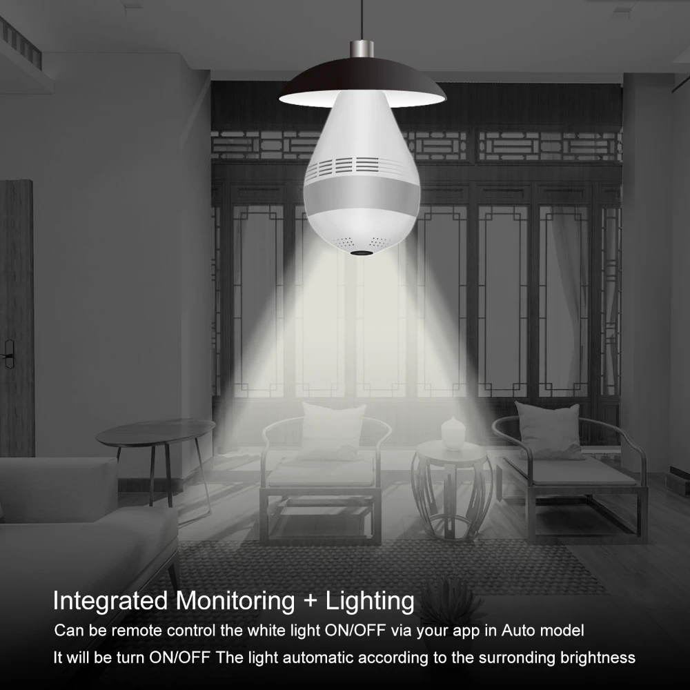 ✔️ TWO-WAY AUDIO: This light bulb camera includes a built-in microphone and speaker, allowing you to hear what is going on around the camera. As a result, you can communicate with your family and your business via your smartphone whenever you want.